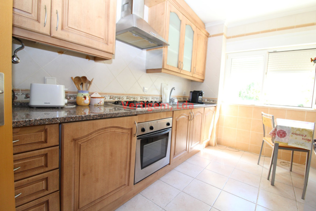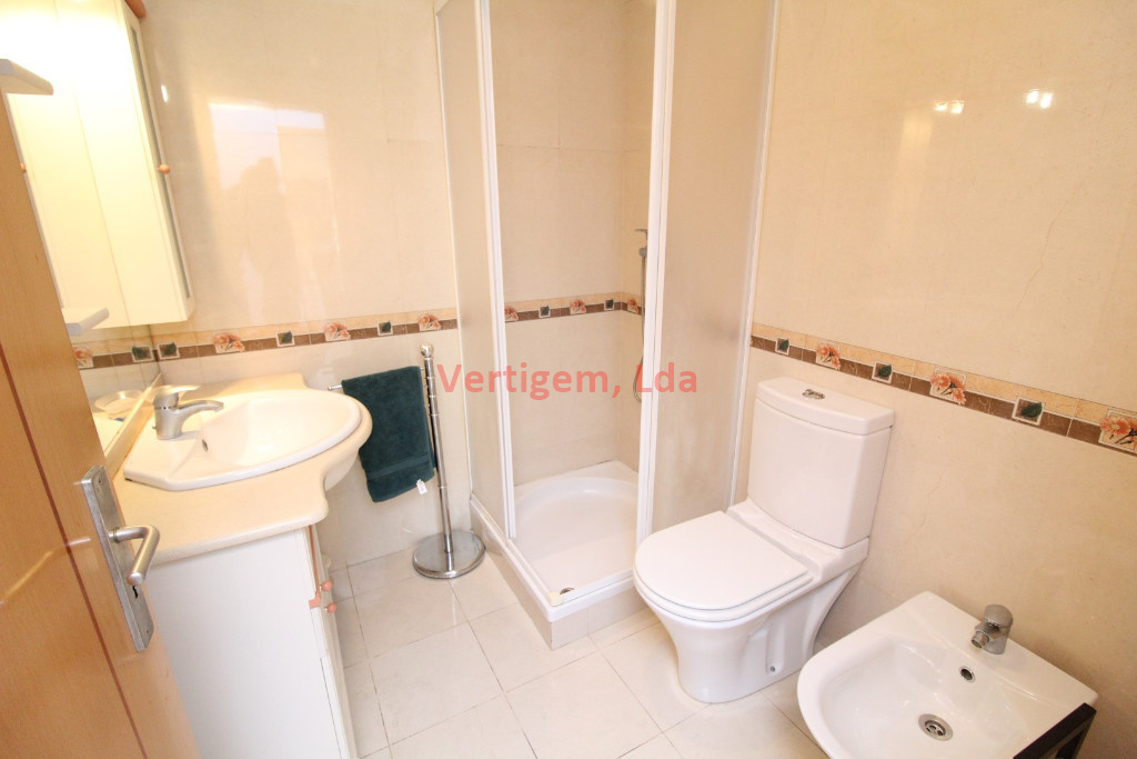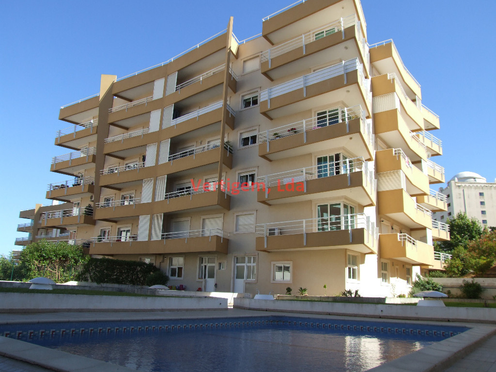 Exelente T2 em condominio fechado com piscina e jardins, localizado em zona muito calma e de facil acesso a Praia.